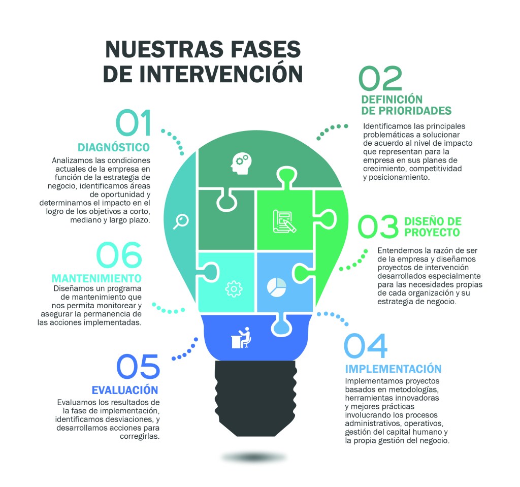 Somos una consultoría especializada en la gestión de negocios con enfoque en el capital humano. Nuestra principal motivación es ayudar a las empresas a lograr sus metas haciéndolas más eficientes, productivas, con clientes contentos y satisfechos y con expectativas reales de crecimiento a través de la implementación de metodologías, herramientas innovadoras y mejores prácticas.