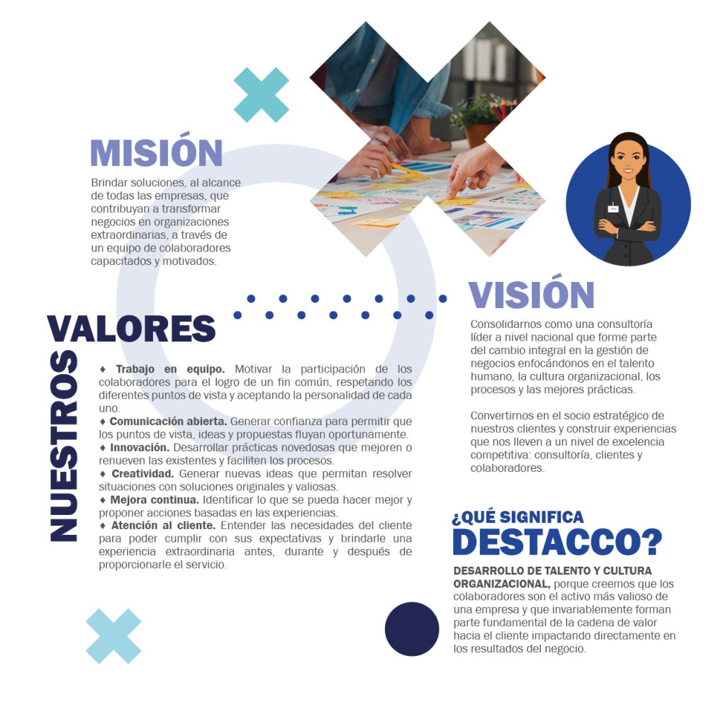 Somos una consultoría especializada en la gestión de negocios con enfoque en el capital humano. Nuestra principal motivación es ayudar a las empresas a lograr sus metas haciéndolas más eficientes, productivas, con clientes contentos y satisfechos y con expectativas reales de crecimiento a través de la implementación de metodologías, herramientas innovadoras y mejores prácticas.